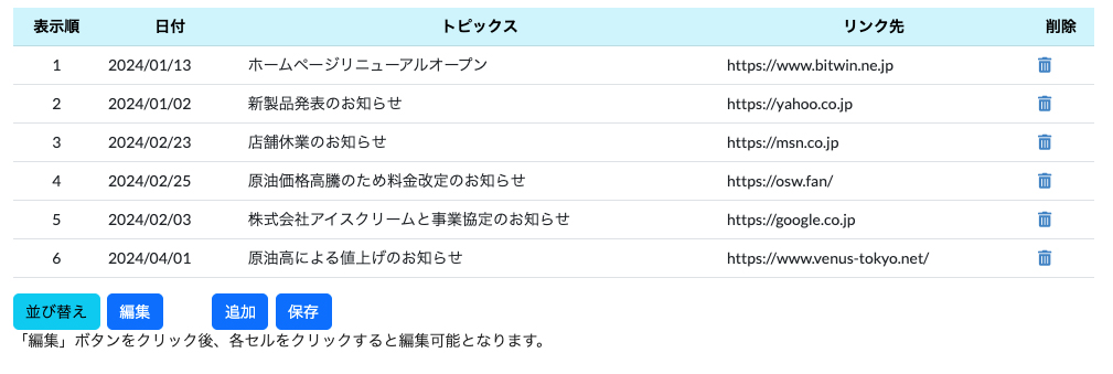 CMSを使用せずに簡単にトピックスや最新情報を管理できるプログラムです。