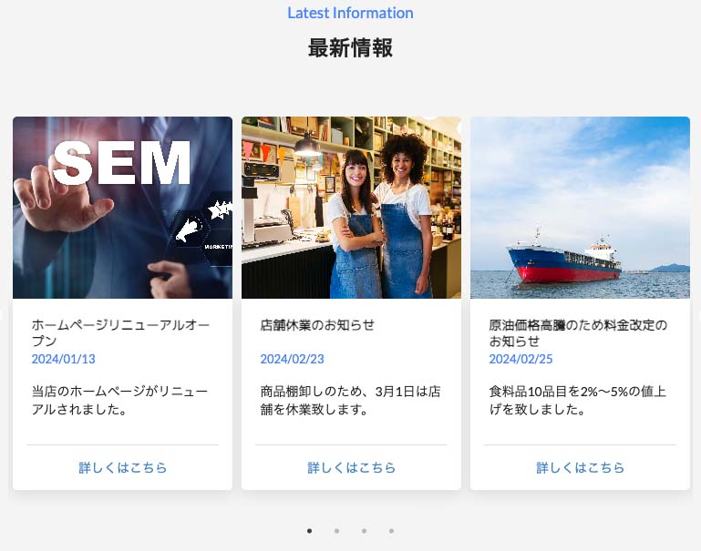 - トピックスや最新情報などの機能をCMSを使用せずに簡単に作成