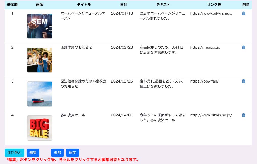 画像付きのトピックスや最新情報を管理できる高機能版プログラムです。